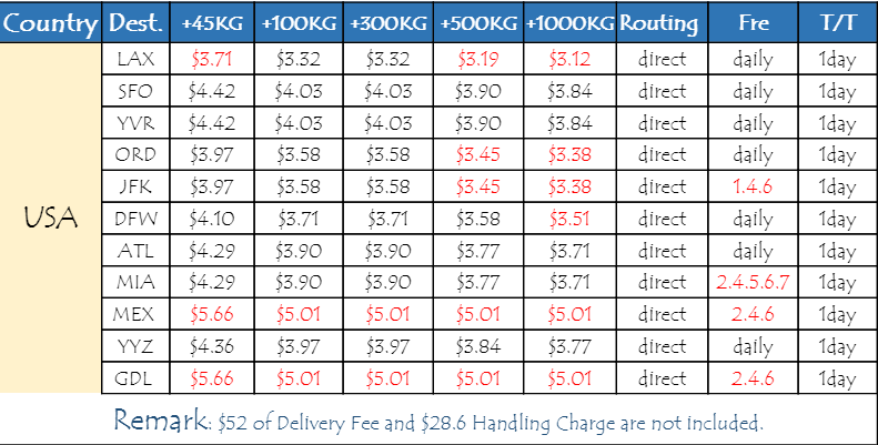 Meanwhile, I would like to offer you our competitive air freights of CX as below from HongKong(HKG), China, to some ports of USA.